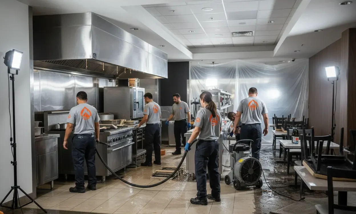Our commercial team handles extraction, drying, sanitization, and repairs.