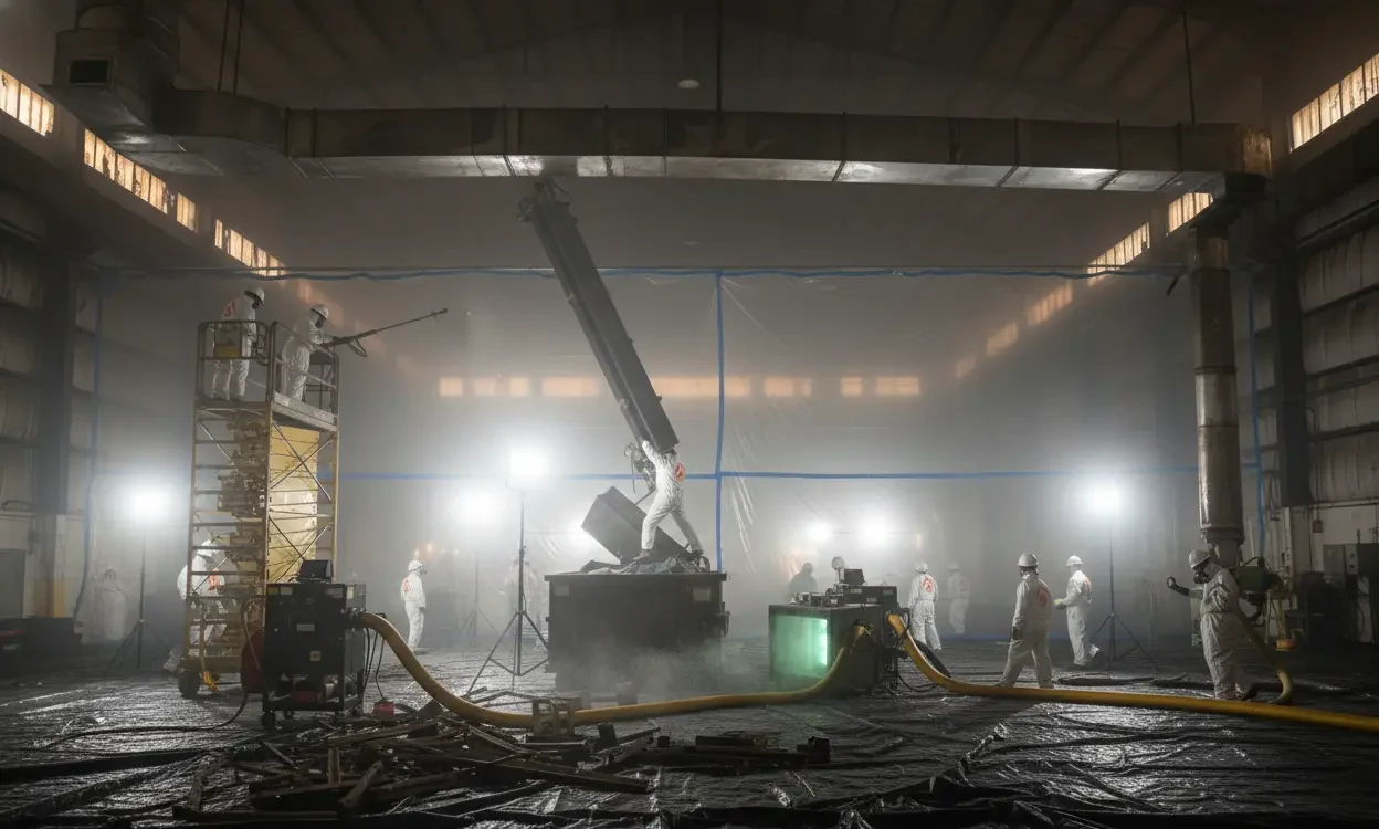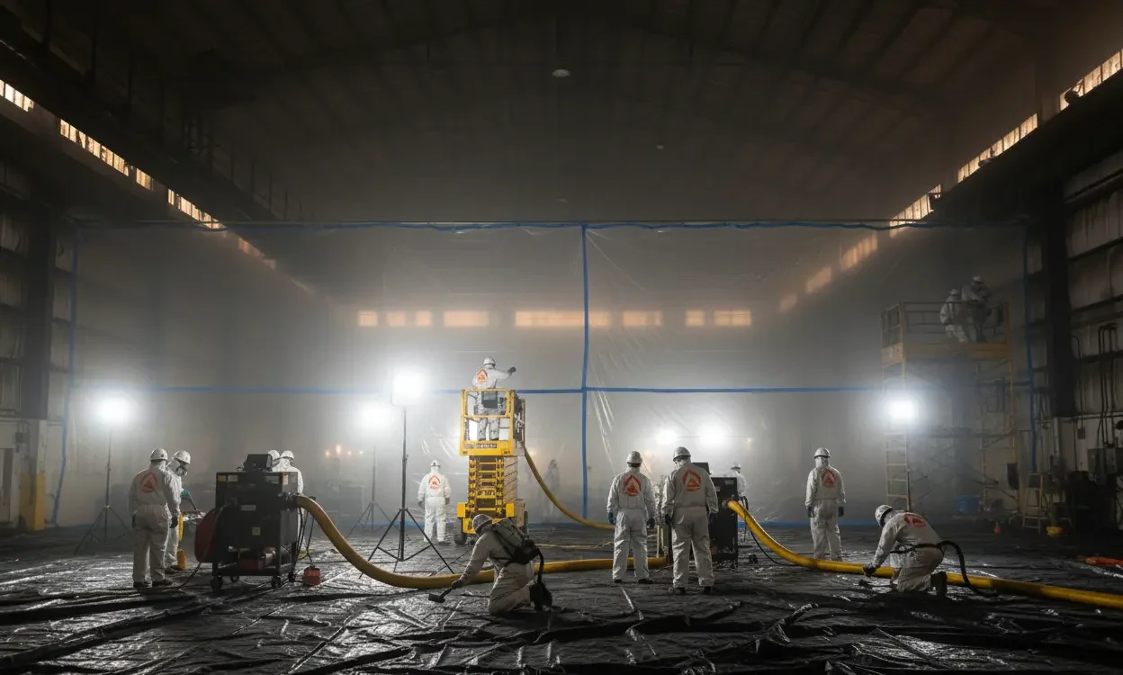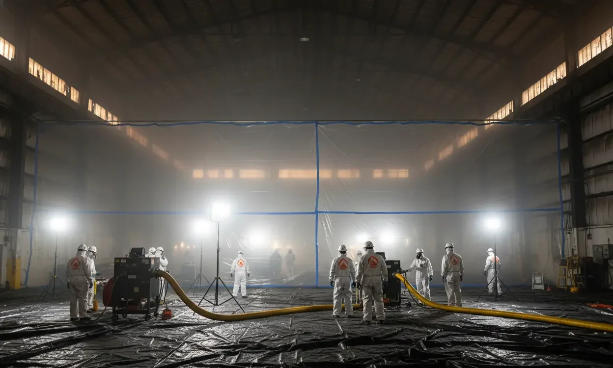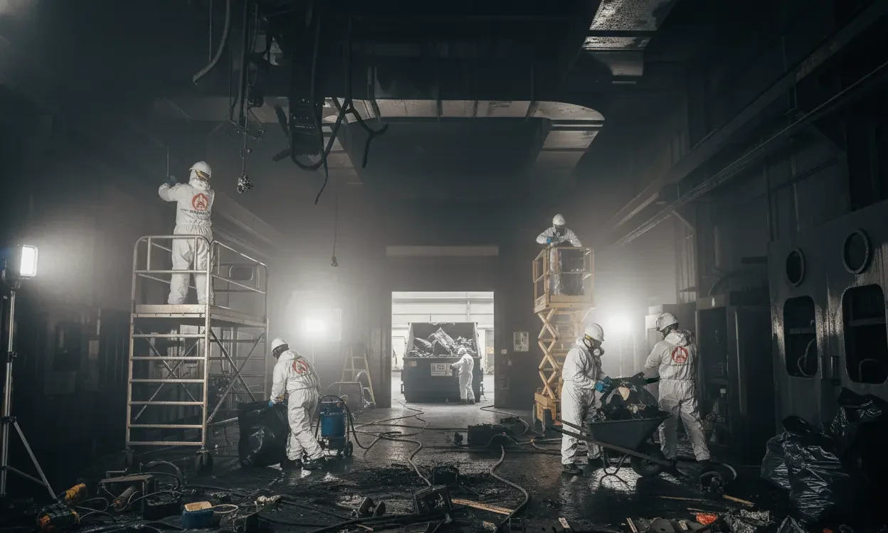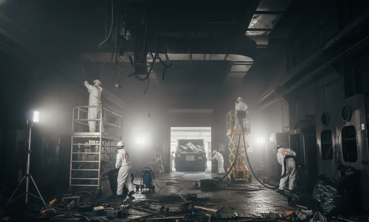 Industrial fire damage requires large-capacity equipment, advanced safety protocols, and precise coordination with facility managers.