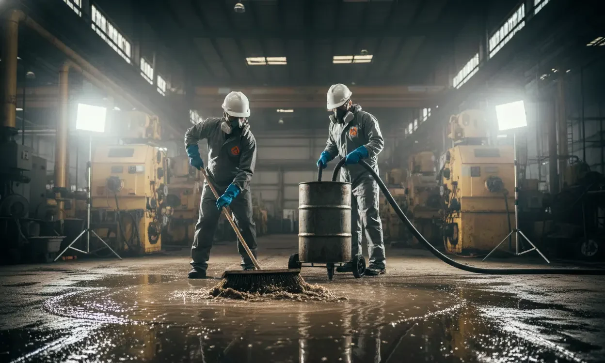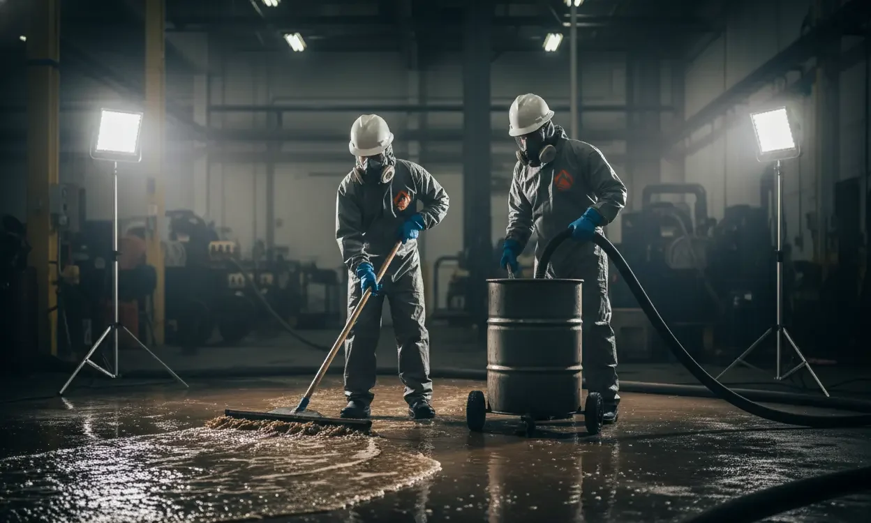 Manufacturing plant sewage backup cleanup