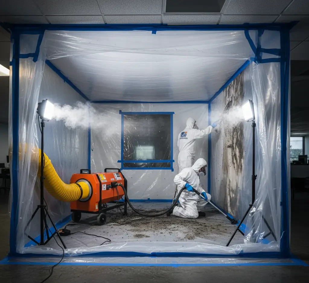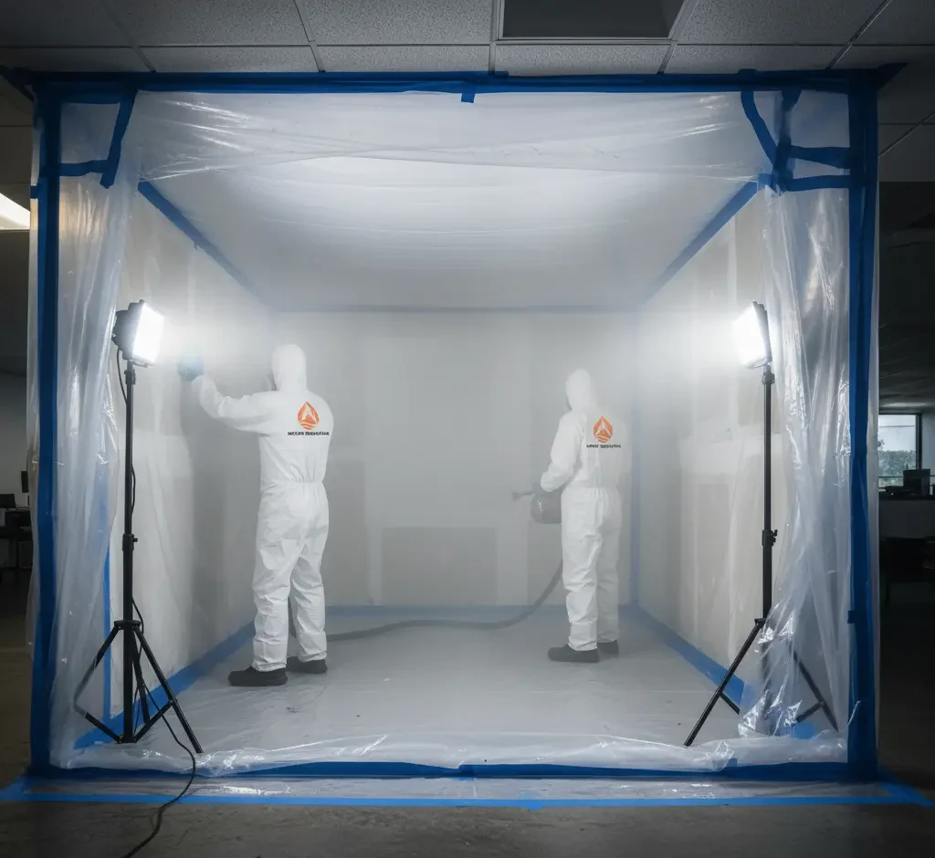 Our certified mold technicians follow a precise, step-by-step process to eliminate mold safely and prevent it from returning. We use professional containment systems, HEPA filtration, and antimicrobial cleaning to restore your home’s indoor air quality and structural integrity.