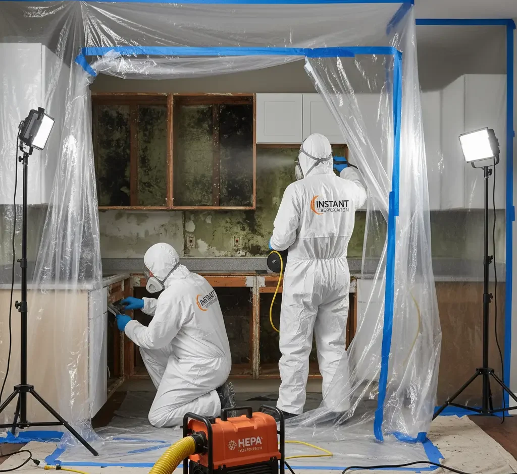 At Instant Restoration, we specialize in mold removal and mold remediation services across Los Angeles County, Ventura County, and Orange County. Our certified experts use advanced containment, HEPA air filtration, and eco-friendly antimicrobial treatments to remove mold safely and prevent it from returning. Whether it’s hidden behind drywall or visible on bathroom walls, our proven process restores your property to a clean, healthy, mold-free environment.