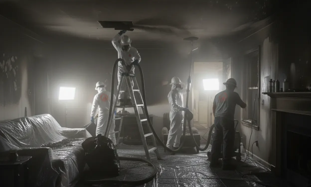 Fire damage requires specialized techniques to remove soot, eliminate odors, and restore safe living conditions. Our restoration process includes: