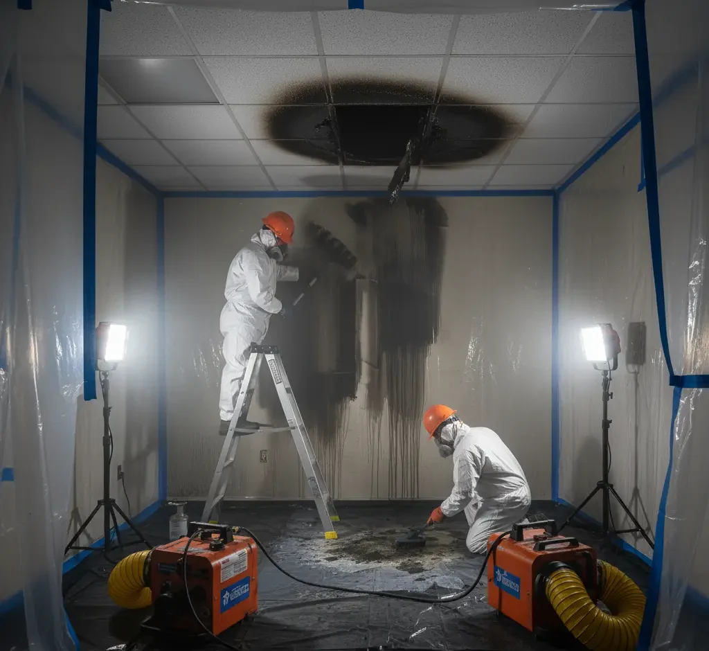 Our smoke damage restoration specialists handle every aspect of smoke and odor removal. Using advanced air scrubbers, ozone generators, and fogging systems, we eliminate contaminants that penetrate deep into building materials and furnishings.